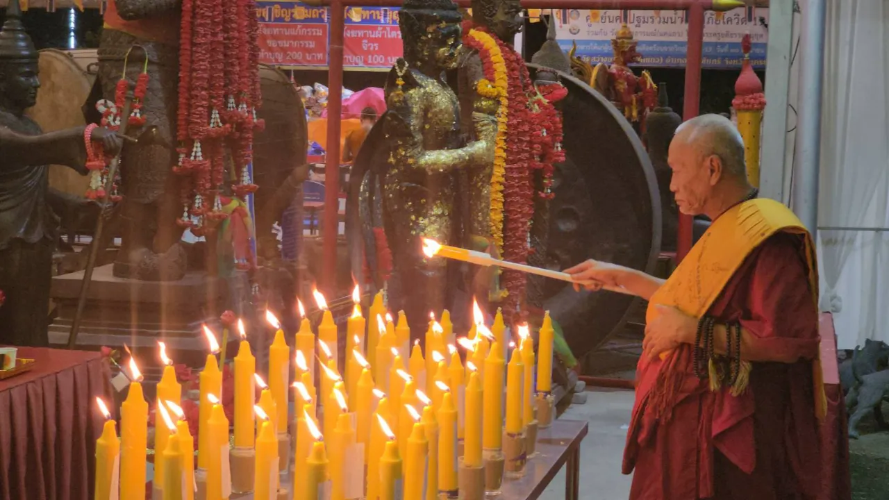 เมื่อวันที่ 8 ส.ค. 67 ที่วัดสว่างอารมณ์ แคแถว ต.ขุนแก้ว อ.นครชัยศรี จ.นครปฐม พระครูยติธรรมานุยุต หรือหลวงพ่อแป๊ะ เกจิดังได้ประกอบ "พิธีจุดเทียนเสริมดวงต่อชะตา" 8 เดือน 8