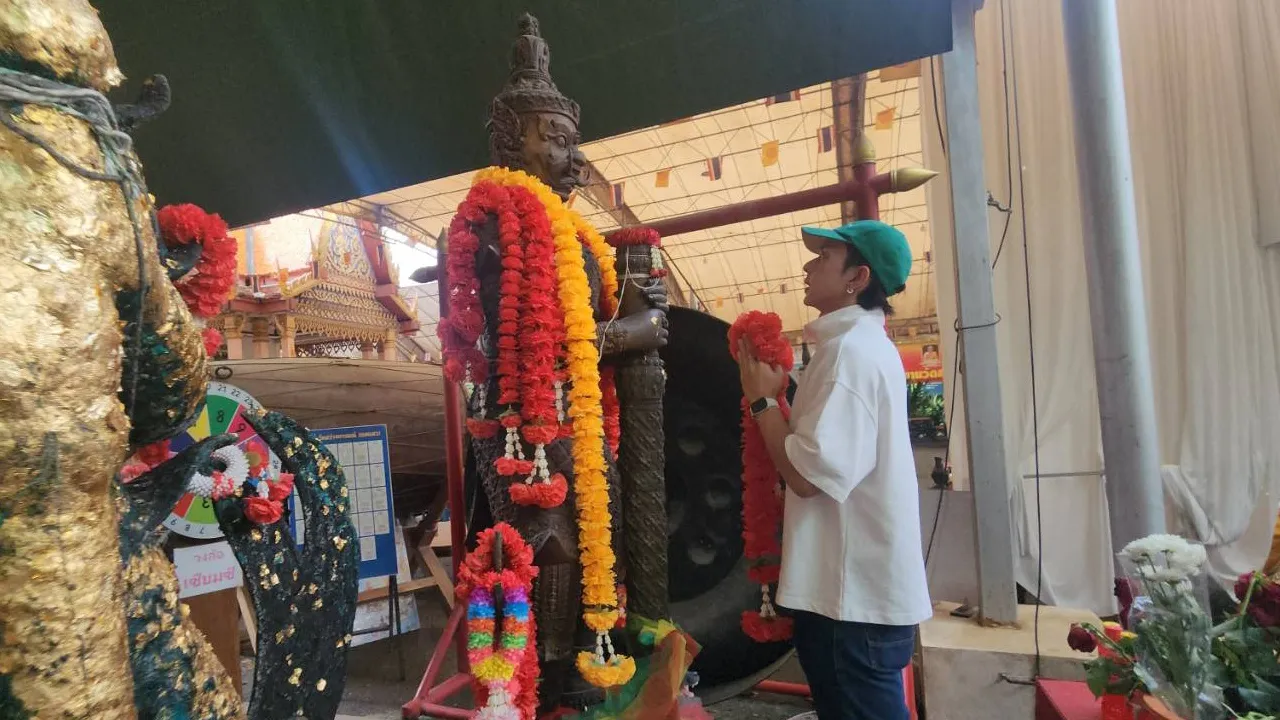 เมื่อเสร็จสิ้น ยังได้แวะกราบขอพร "ท้าวเวสสุวรรณ" บริเวณลานด้านหน้าทางขึ้นศาลาการเปรียญ จุดธูปขอพร อธิษฐานขอพรขอโชคลาภ เพื่อความเป็นสิริมงคล และนำธูปมงคลปักไว้บนฟักทอง จุดธูปรอจนหมดดอก ปรากฏเป็นเลข 4 0 9 พร้อมกับชี้ให้บรรดาแฟนคลับและสาธุชนได้ดูอีกด้วย